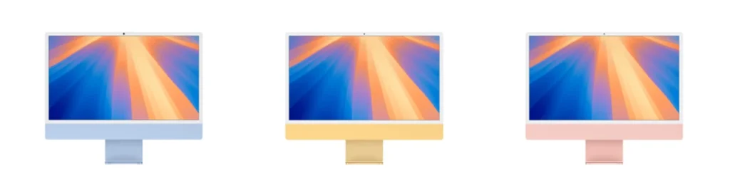 iMacはディスプレイ一体型のオールインワンMacです。美しい24インチの4.5K Retinaディスプレイを標準搭載しており、追加の外部ディスプレイと組み合わせることでマルチモニター環境を構築できます。